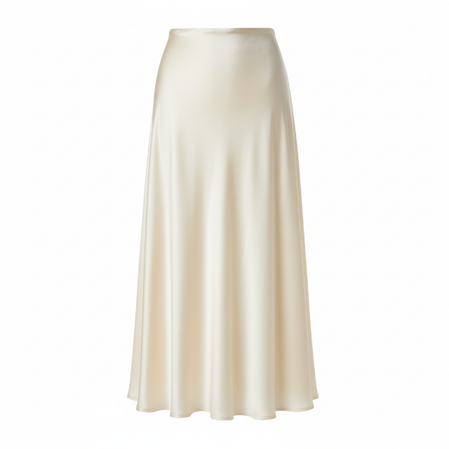Jupe midi longueur cheville, légèrement évasée pour un mouvement naturel et aérien.